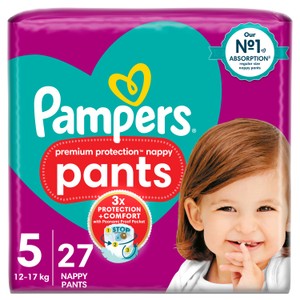 Pampers Premium Protection Nappy Pants Essential Pack Nappies Size 5, 12kg-17kg x27
