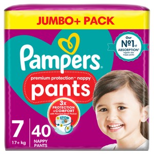 Premium Protection Nappy Pants Size 7, 40 Nappies, 17kg+, Jumbo+ Pack